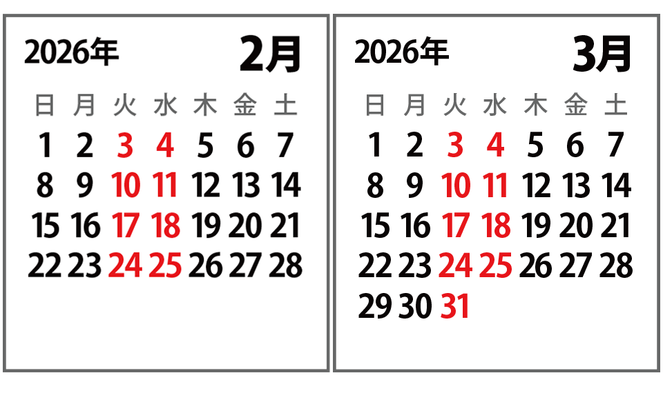 定休日:火曜・水曜 <夏季休業・冬季休業・GW休業>