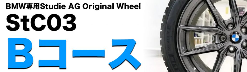 StC03はスタッドレスシーズンを見据えたStudieオリジナルの定番ホイールです。幅広い車種に対応するサイズバリエーションをご用意しています。BMW純正センターキャップ対応です。
