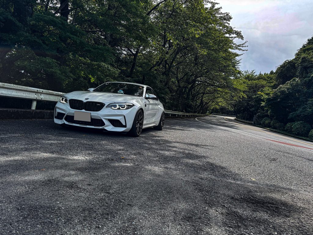コメント:青空に向かって延びていく道を前に、深緑の木陰から走りたそうに目を輝かせてる愛車