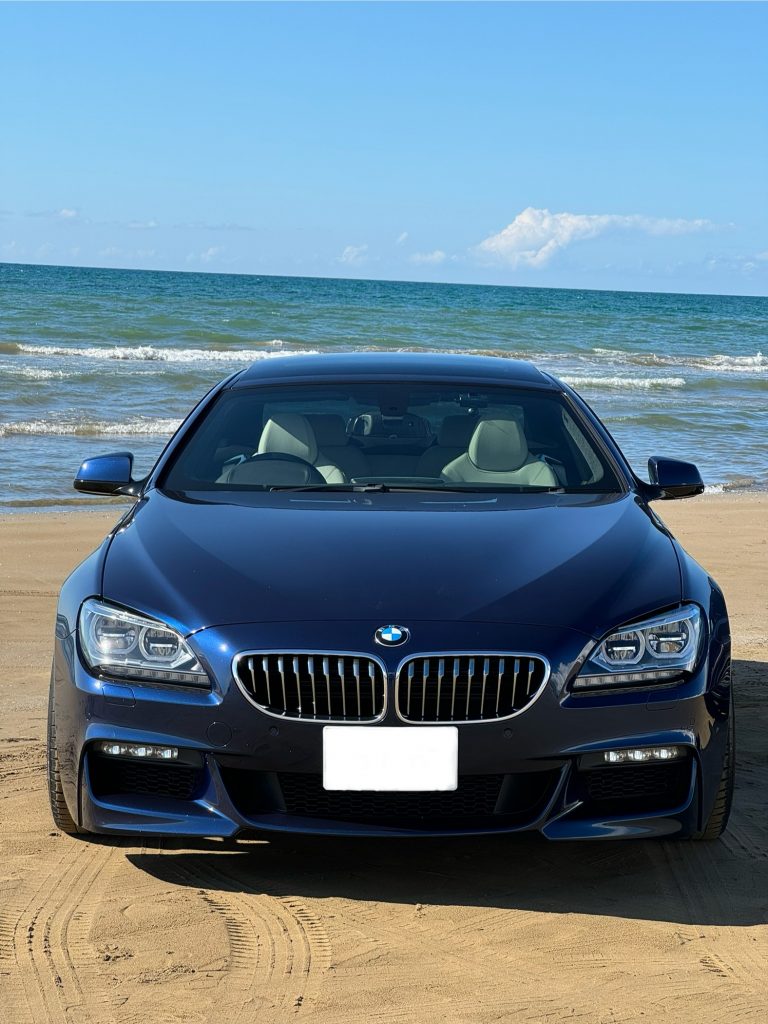 コメント:6シリーズの1番お気に入りのアングルです。2010年本国デビューですが、とても15年前の車とは思えない精悍な顔立ちに、独特なヘッドライトが大きく寄与していると思います。前期の6シリーズのみに与えられるこの特徴的なヘッドライトに惹かれ、購入を決めた6シリーズのオーナー様も数多くいらっしゃるのではないでしょうか。昔ながらのテイストを残しながらも至るところにLEDが用いられ、現代的なデザインが施されているF型6シリーズが大好きです。所有して6年半10万キロ、北は北海道から南は九州まで走りましたが、大きなトラブルもなくまだまだこれからも所有したいと感じる大切な相棒です。