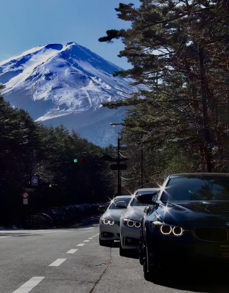 コメント:初冬の朝、4シリーズ仲間と一緒に。逆光の中、新雪の富士山をバックに撮影。太陽光が3台ともきれいに反射し、3機のモビルスーツならぬ3台のF系4シリーズが一直線に並び鋭い眼光を放ちました。