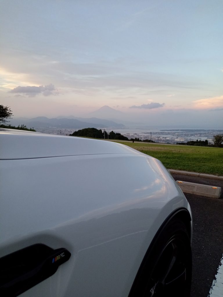 コメント:職場の先輩に宿泊券をプレゼントしてもらったので、静岡県を観光・ドライブしました。日本平からくだる途中に見晴らしの良い場所があり、愛車のM2Cと共に富士山を眺めながら、先輩への感謝の気持ちを込めて撮影しました。テーマ「目 -eye-」に合わせて右ヘッドライトがギリ写るような構図にしてみました。