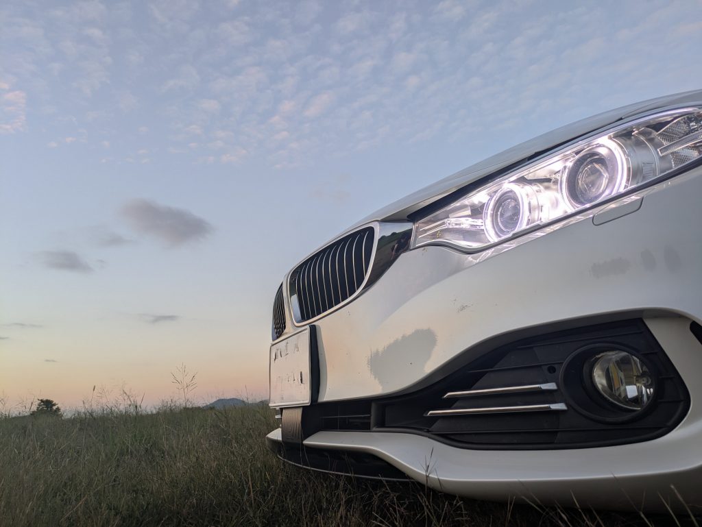 夕日を見すえるような構図によってこれからもBMWと共に駆け抜け続ける日々を意図しました。