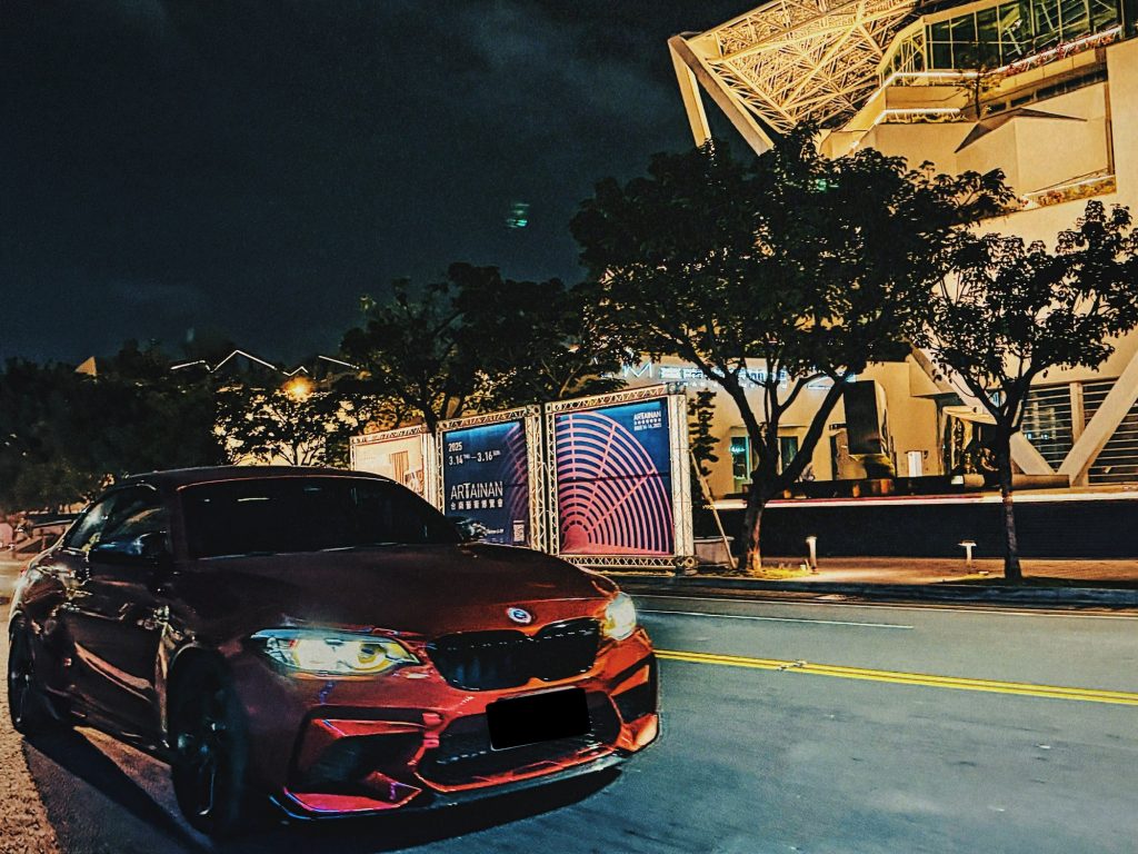 コメント:闇に浮かぶ二つの光は、ただの車の灯りではない。それは夜を見据える瞳であり、未来を切り拓く意志の象徴。赤いボディは静かに燃える炎のように存在感を放ち、都市の闇と光の狭間で力強く輝いている。