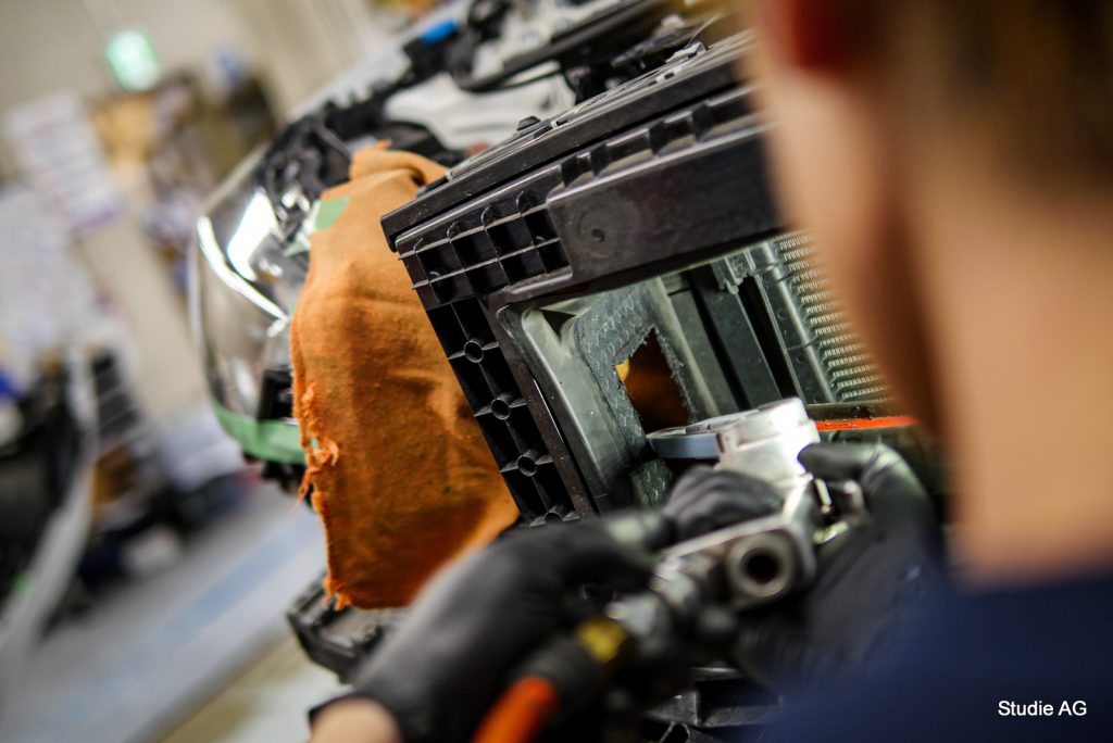 バンパーを取り外して、コンデンサー前の横壁をカット加工!