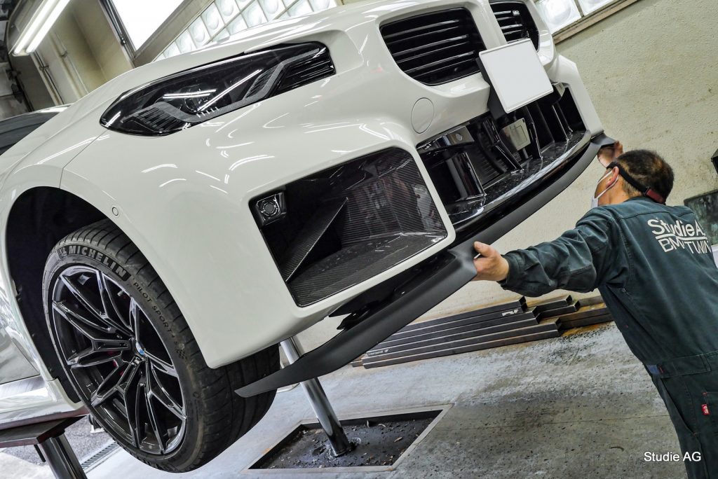 超絶人気炸裂中なBMW G87 M2CSに装着されてるラバーLIPをG87 M2に流用取付の図♪