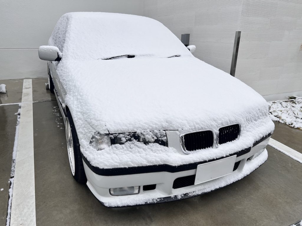 念の為、道路チェックし大丈夫だったので出社するも駐車場は雪国?w