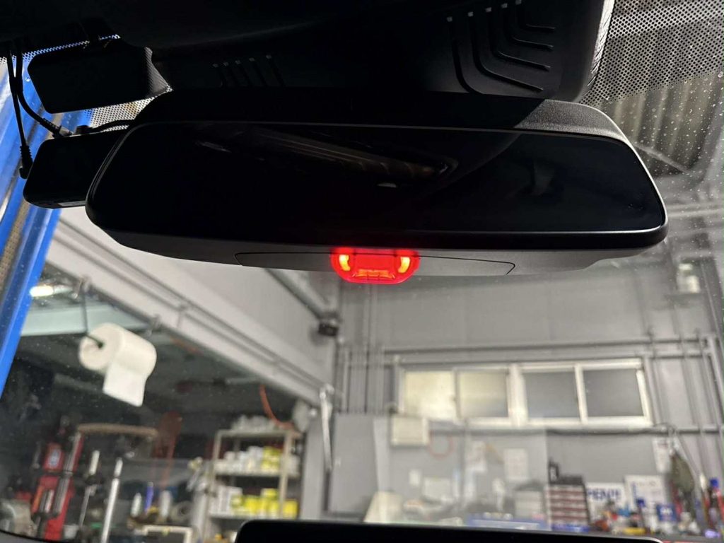 それからルームミラー下のDWA盗難防止LEDを利用したセキュリティライトプラスを取り付けていただきました。 BMW純正オプションの機能を利用したものでございます。DWA盗難防止オプションが備わっていないお車でもLEDランプだけ車両ロック時に点灯させることが出来る用品がセキュリティライトプラスでございあます。