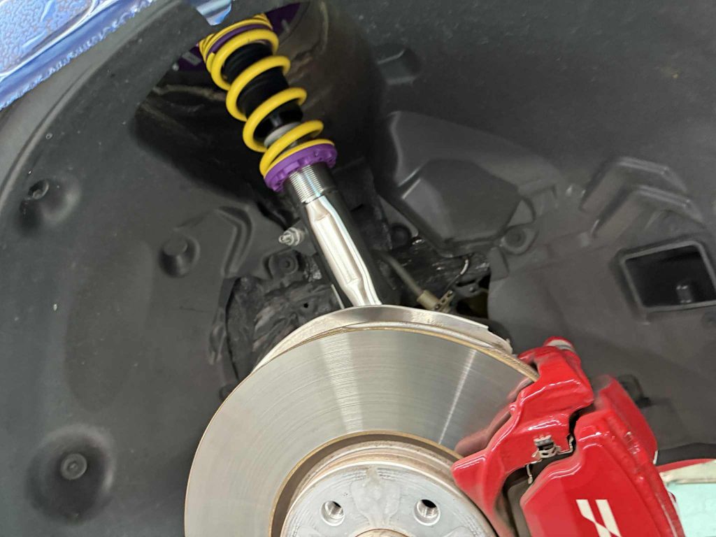 まずはサスペンション! KW V3ClubSportsサスペンションを装着♪ モータースポーツテクノロジーをフィードバックして生まれたサスペンションはキャンバーアッパー、直巻きスプリング、2Way減衰力調整機構とより最適化された特性でサーキットからストリートまで!