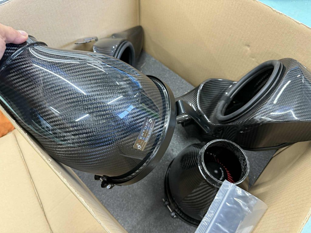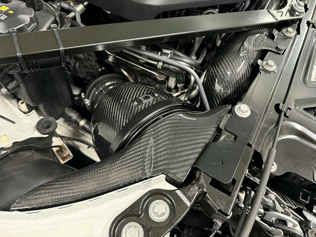エンジンへ安定してエアーを多く供給する事で人気のEVENTURI(イベンチュリ)のエアインテークシステムをG80 M3 Competitionへ装備いただきました♪ 航空工学を取り入れた圧倒的な吸引力と構成する殆どの部品をドライカーボンで製造を行うパワフルでCoolなエアインテークシステムでございます(^_^)