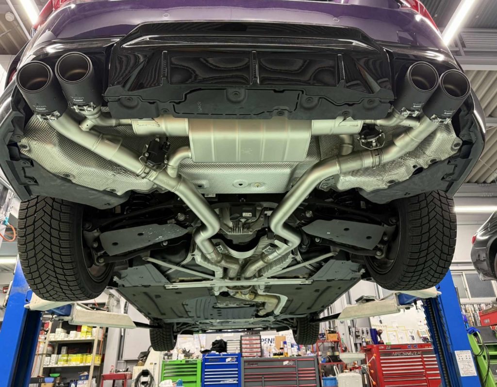 神戸店の限界突破歳末セールでAKRAPOVICエキゾーストをBMW G42 M240iXへ装着です♪♪