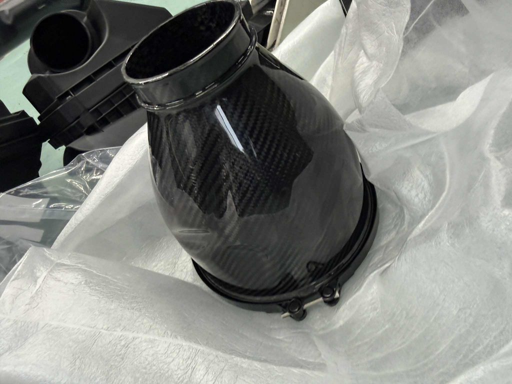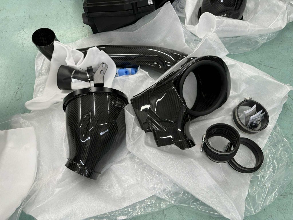 来ました!EVENTURI(イベンチュリ)インテークシステム!!何度もご紹介をする鉄板のエアインテークキットでございますが、特徴的なドライカーボン製の見た目の美しさのみならず、裏打ちされた性能が引き付ける魅力がございます。高速道路やワインディングでBMWの性能を楽しむOwner様から、サーキットオンリーのOwner様まで幅広くご愛用頂き、性能・耐久性・スタイリングとEVENTURI社の力を感じます! 今日のご用命はG80LCI M3 CompetitionのOwner様からでございます!それでは早速搭載です(^_^)v