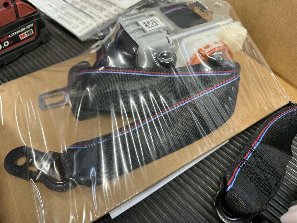 BMWのBIGクーペであるG16 M850iXへ純正オプションのMシートベルトを装着いただきました! ご覧の通りMストライプがあしらわれたシンプルにかっこいいヤツです!MSportも全部これでいいんですけど、残念ながらオプション装備なので付けちゃいます(^_^)