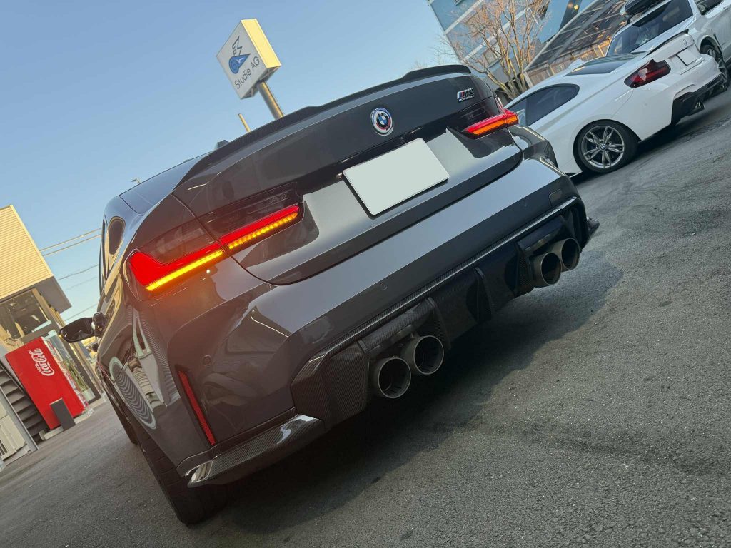 こんばんはスタディ神戸の池上です。今夜もよろしくお願い致します。 ご紹介は関西のBMWエアロメーカーend.ccさんのカーボンエアロパーツを装備いただいたG80LCI M3Competitionのご紹介です! end.ccさんと言えば近年路線変更⁈と思わせるデザインで、ご紹介させていただくG80 M3やG82 M4、G87 M2で人気が拡大中でございます♪ 絶妙なデザインがG80LCI M3を更に引き立ててくれます(^_^) それではドライカーボン製のend.ccエアロパーツをいざいざ!