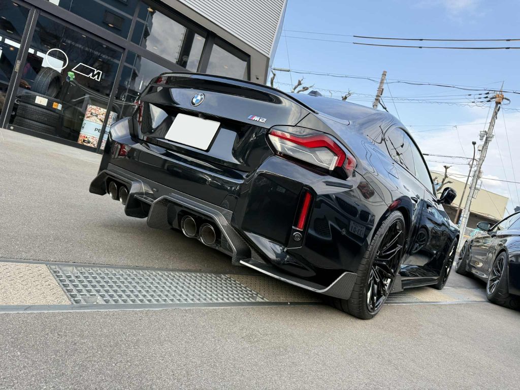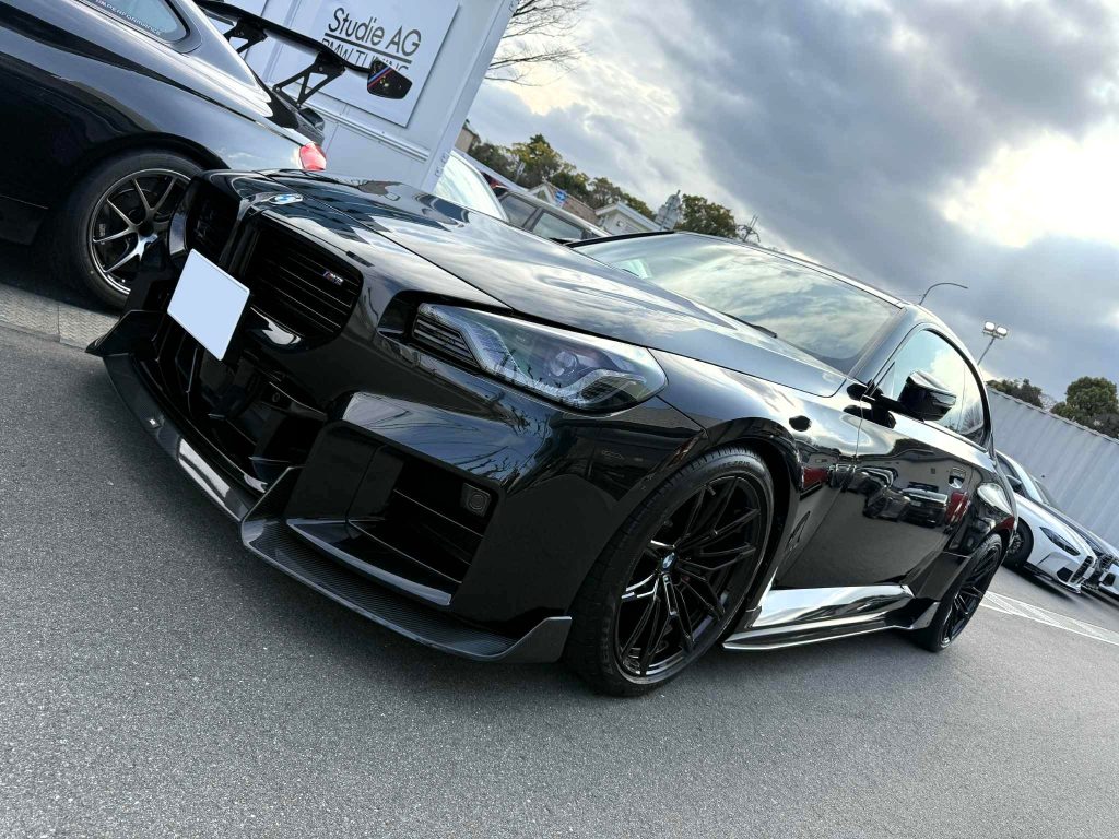 こんばんは!スタディ神戸の池上です。 連日カスタムいただきましたG87 M2をご紹介です! ハイパワーでピュアFRスポーツドライブを楽しめるBMW G87 M2は初代F87 M2の流れるようなボディラインと打って変わり、80年90年のモータースポーツスタイルを取り入れたデザインでボックス型のデザインが特徴でございます。