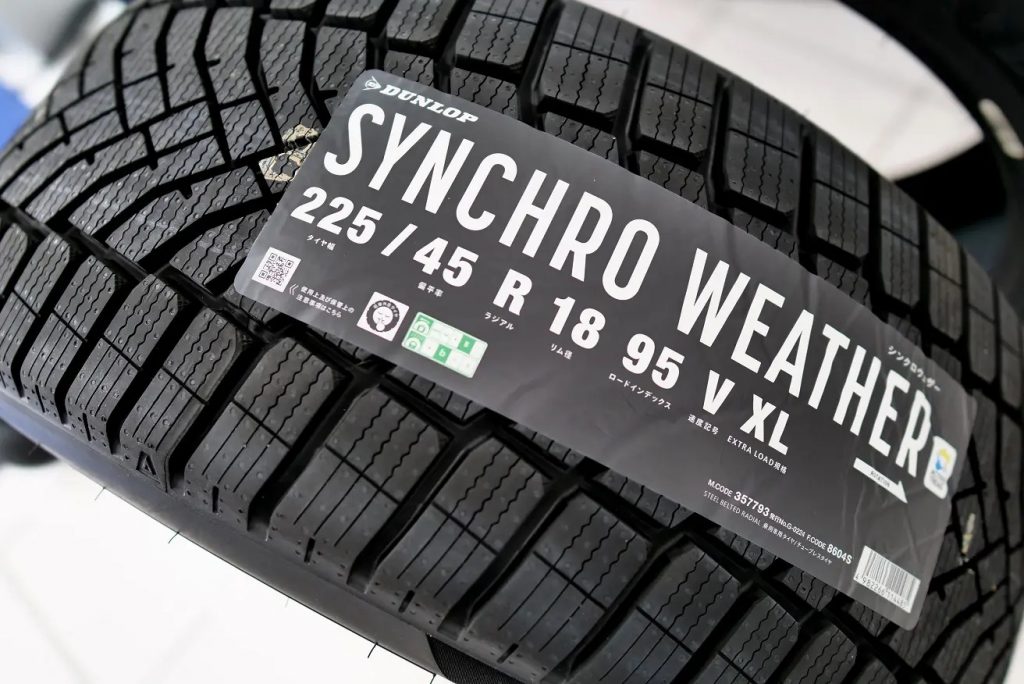 以前にもご紹介させていただきましたが、こちらはDUNLOPのSYNCHRO WEATHER(シンクロ ウェザー)というタイヤです。こちらはスタッドレスタイヤではなく、サマータイヤとスタッドレスタイヤの性能を両立させた次世代オールシーズンタイヤなんです。