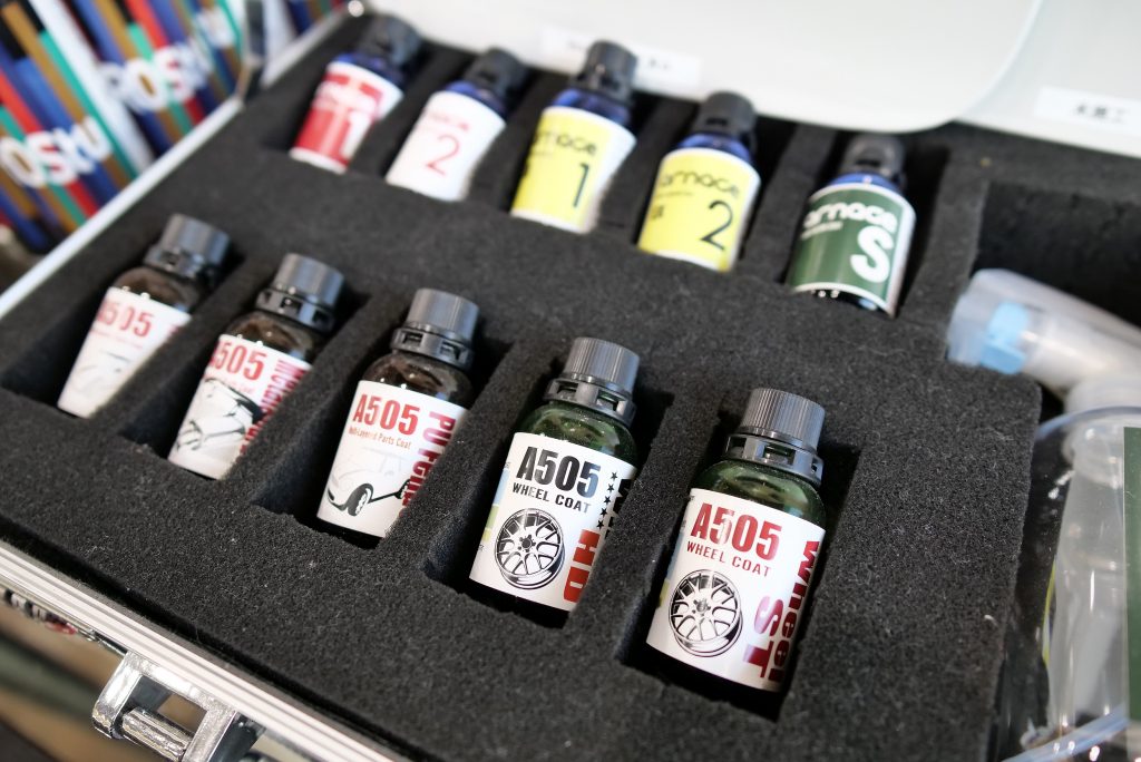 荒聖治選手プロデュースのARAFコーティング!荒選手のこだわりが詰まった商品でして、素材別に最も相性の良いコーティング溶液をご用意しています。ボディーはこれ、ホイールはこれ、マフラーやブレーキキャリパーはこれ、カーボンパーツはこれ、ラッピングにはこれ、とお好みでカスタマイズが可能です。