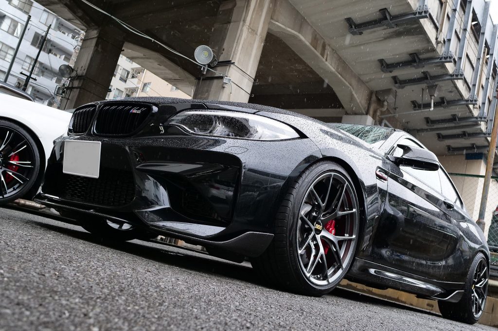 こちらのBMW F87 M2 スタンダートモデルですが、好きのないスマート仕上げが大きなポイント。M2Cのミラーやブレーキキャリパーは青から赤へペイント。エアロはSTERCKENNとM Performanceの組み合わせ。なかなか絶妙な車高でピッタリと収まっているBBSのFI-R。どこから見てもキレイ目でボク好み。今日はそんな愛車をお手軽セキュリティしてくれる「セキュリティライト プラス」のセットアップ。