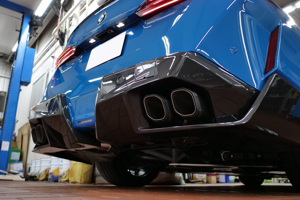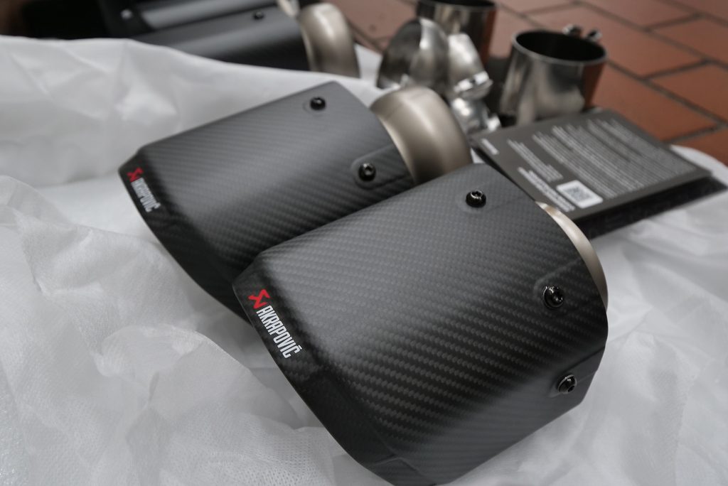 そして今回セットしたフルチタン+カーボンテールのAKRAPOVIC。AKRAPOVICといえば、フルチタン構造による圧倒的な軽量化、美しい溶接、そしてレース由来の技術が生む高い耐久性とパフォーマンスが魅力。見た目の迫力はもちろん、踏み込んだ時の刺激と日常域での上質さを両立した“音のチューニング”は唯一無二。G60 M5のキャラクターにベストマッチです。
