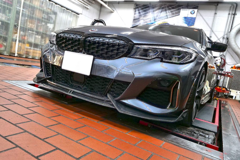 純正リップはボディに自然に馴染むスマートさが魅力でしたがその上に“攻撃性”というエッセンスが追加されるADRO。まるで同じ車とは思えないほど、視覚的な重心がグッと下がってM340の持つ力強さが前面に押し出されます。