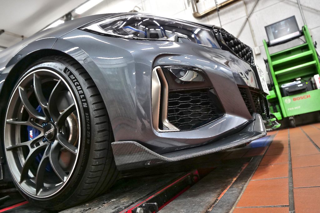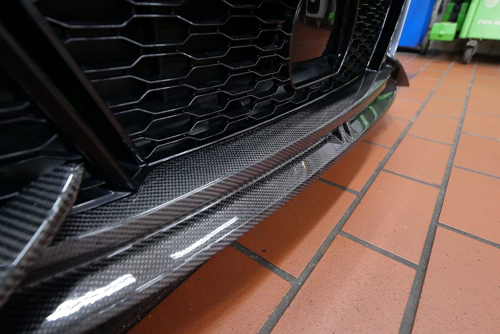 これまで純正のフロントリップが装着されていましたが、さらなるアップデートとして ADRO のカーボンリップへチェンジ。この一手が想像以上に効きましたッ。まずパッと見て思うのは顔つきの鋭さが段違い!