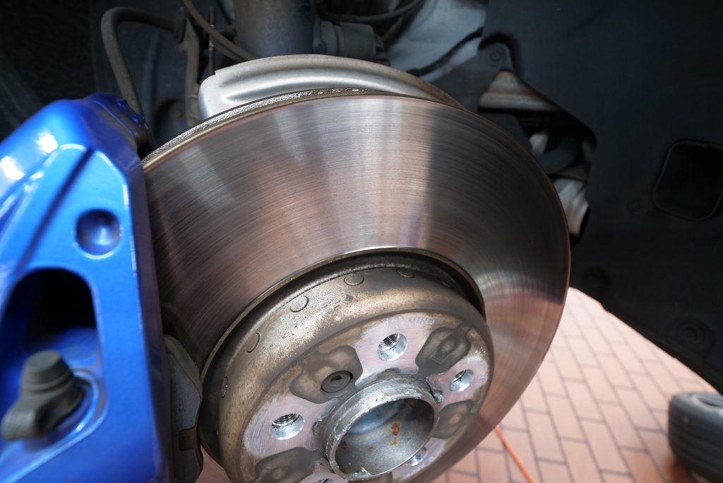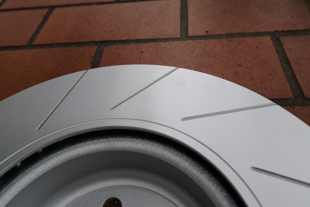 前後共に、ローターも下限値あたりまで来ていたのでSR4ブレーキパッドと組み合わせてローター交換もご依頼頂きました。そのままのプレーンではツマラナイw ということで、SDと呼ばれるスリットへ!