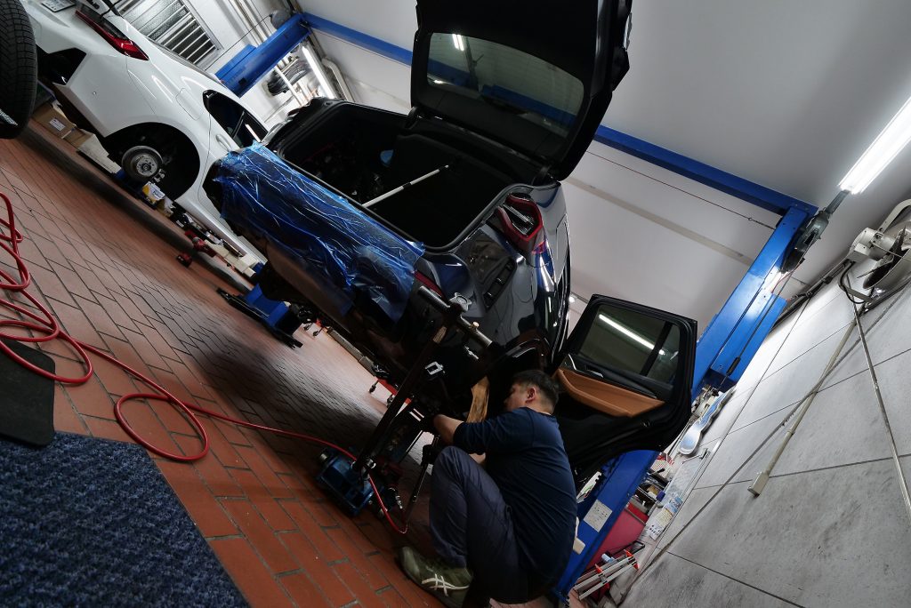そして今朝はまさに“スプリング祭り”状態(笑)こちらのG20 M340からスタートし、続いてG01 X3 M40d、さらにG20 320d xDriveとスプリング交換が続々と入庫中。これも先日開催した3D Designイベントでご用命いただいた分が一気に作業フェーズへと突入している証w