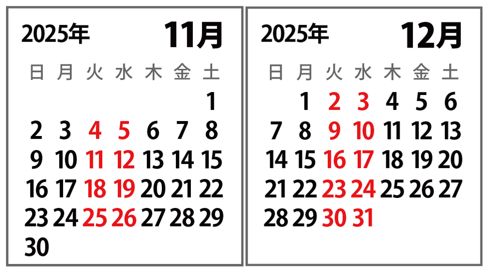 11月からStudieの定休日が変わります。