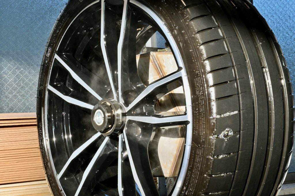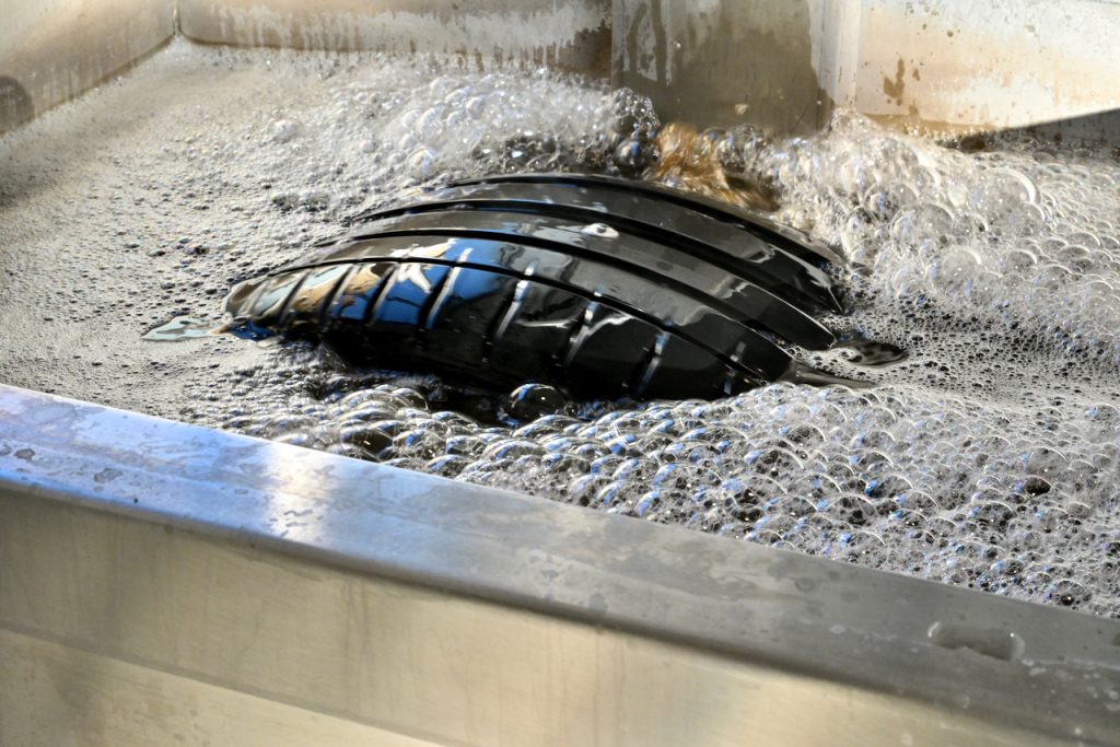 タイヤ付きWheelを超音波洗浄マシンにどぶ付けして
