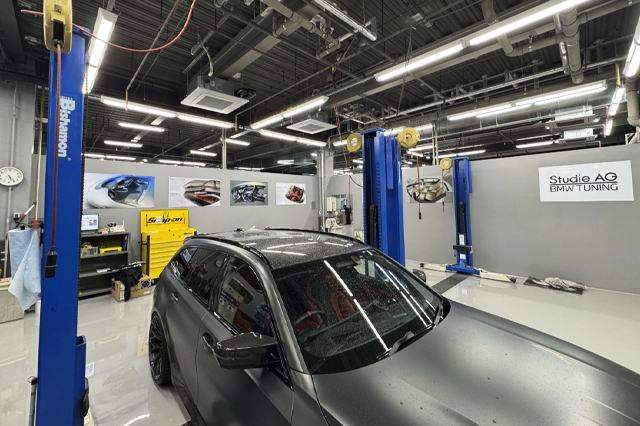 名古屋店300台を超える巨大な駐車場は全て平置きですのでどんなに巨大なNew7でもX5でも、車高の低い車両もワイドなそれも楽々停めることが可能です。店前のスペースも空いていれば駐車可能ですが、いっぱいでしたら裏の立体駐車場スペースにお停めください。愛車のKEYはご自身でお持ち下さい。作業依頼をフロントでお受けする時に初めて我々の方でお預かりするスタイルとなります。それと、店前スペースには充電ステーションも二機ございますのでi3やi8も、いつでもご利用下さい。