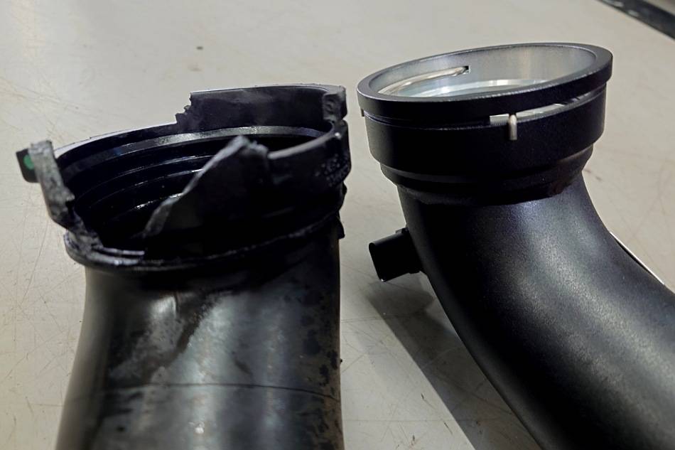 お車確認しましたら、チャージパイプが破損していました(TT△TT)