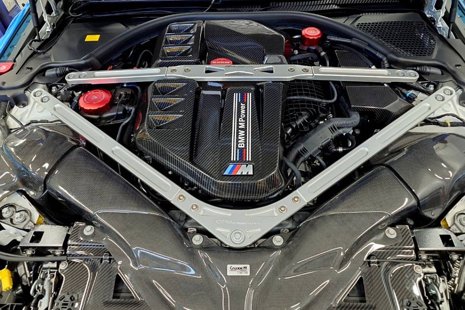 本日は、大変長らくお待たせしておりましたM様のBMW G82 M4 Competitionへ「BLACK LINE」キャップカバー、INDIV Carbon Parts、CPMをお取付けしました(^^)/