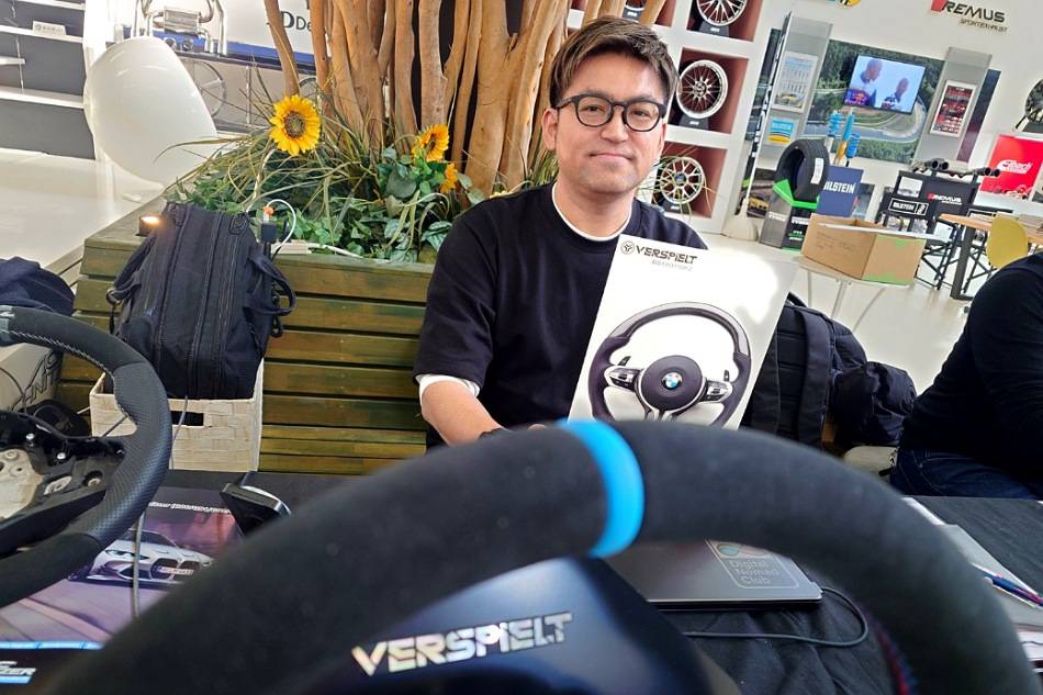 唯一ちゃんとお写真撮らせていただきましたVERSPIELT(ファスピエルト)さんはステアリングに触れていただきながらご案内中♪