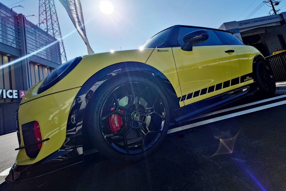 最初のお写真のF66 MINI AC Schnitzerデモカーは、青空の下でもしっかり映えるイエローがかっこ良くて可愛くて(☆▽☆)