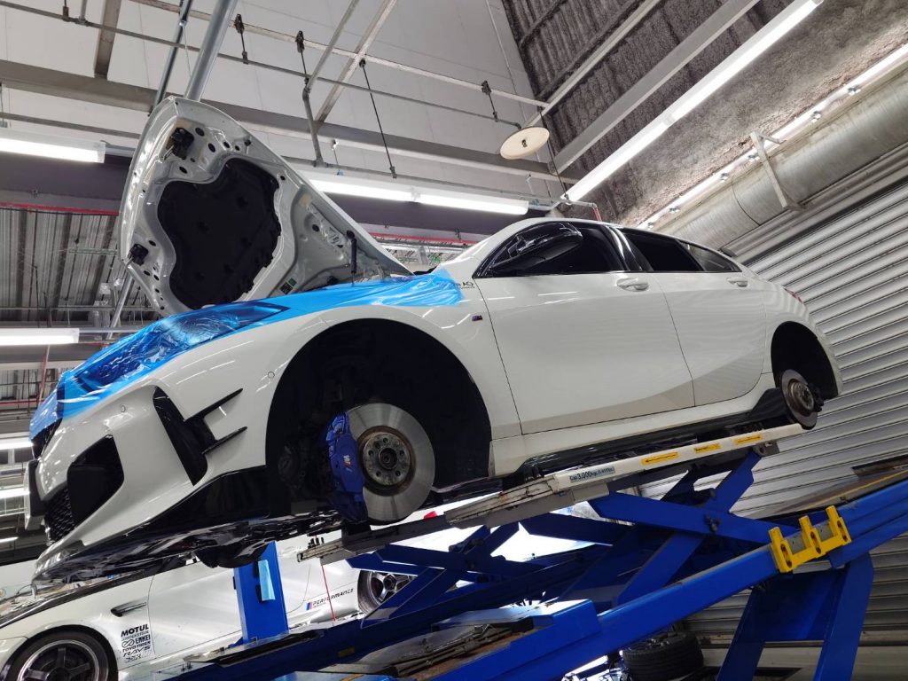 いつもBMW F40 M135iとの走行が楽しくなるアイテムをご希望いただいているT様。やっぱりメンテナンスは欠かせない!と早めにご予約をいただきました。