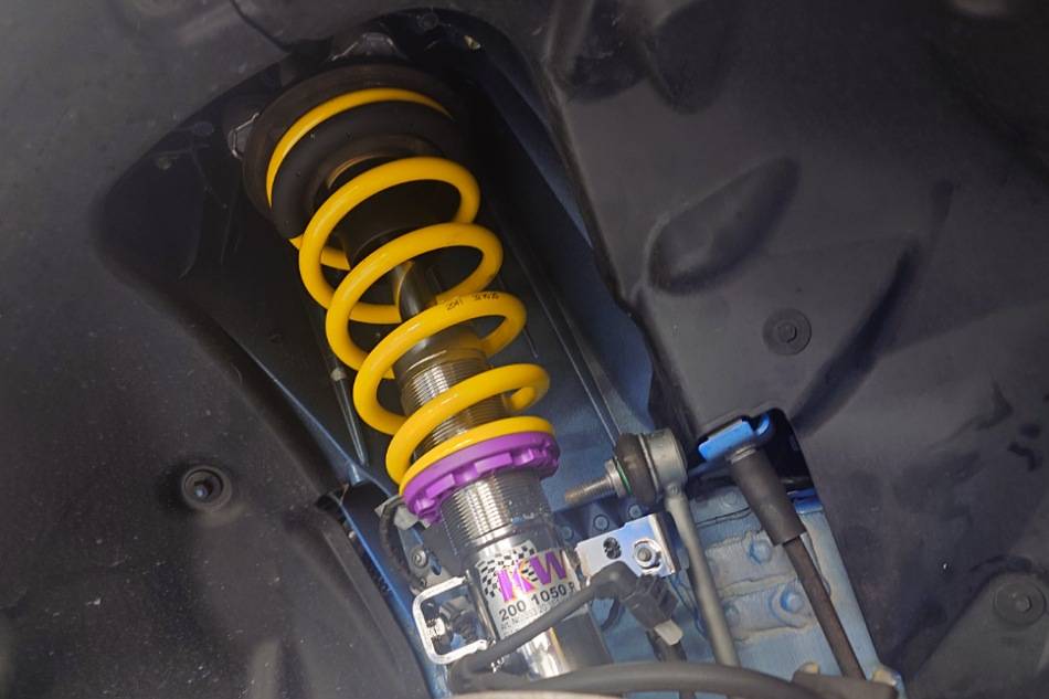 突き上げ感も気になるとのことで、更なる車高ダウンを叶えつつ乗り心地も高評価のお声が多いKWサスペンションキットから、車高だけではなく伸び側/縮み側の減衰力調整も可能なKWV3をお選びいただきました。