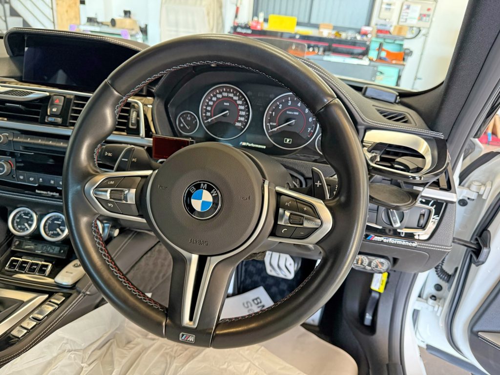 ステアリング交換に合わせまして M パフォーマンスカーボンカバーにもチェンジいたしました。