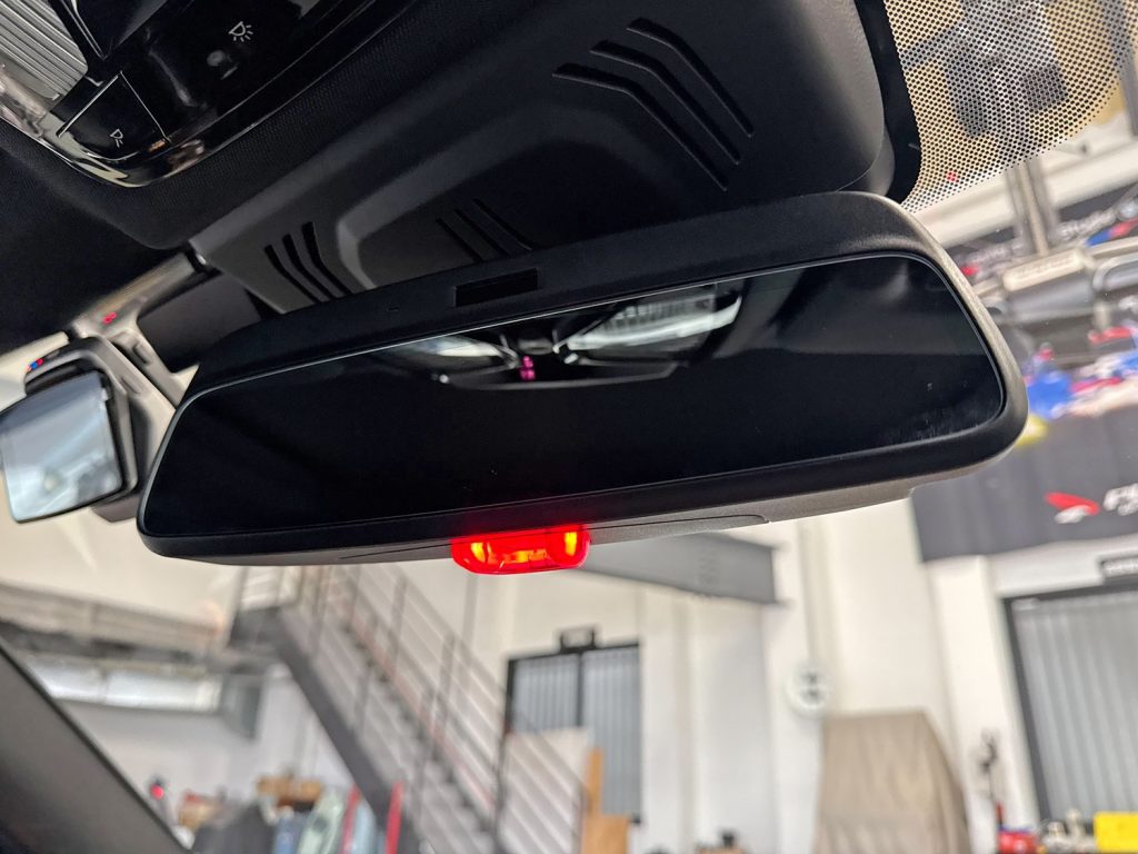 純正ルームミラー下に備わりますポッチ部分がドアロックと連動し赤く点滅いたします。