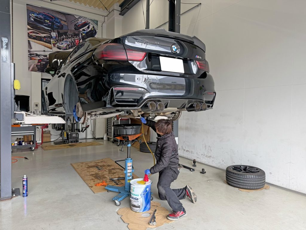 朝一はF82 M4 にご来店いただきDCTフルードにデフオイル交換からスタートいたしました。