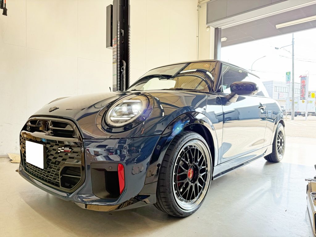 快晴の福岡店の朝一は MINI F66 JCW にお越しいただきました。