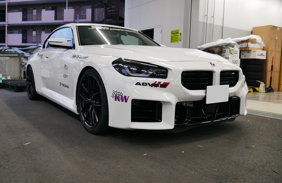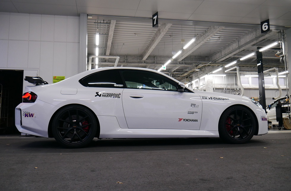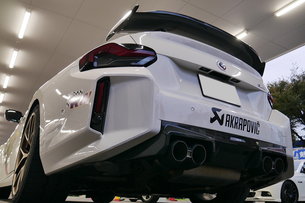 AKRAPOVICエキゾースト&エアロパーツ、KW、BBS CI-Rを装着したHASHIMOTOコーポレーションさんのデモカー、BMW G87M2を10月30日までスタディ名古屋店(仮店舗)で展示しています。