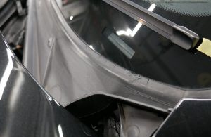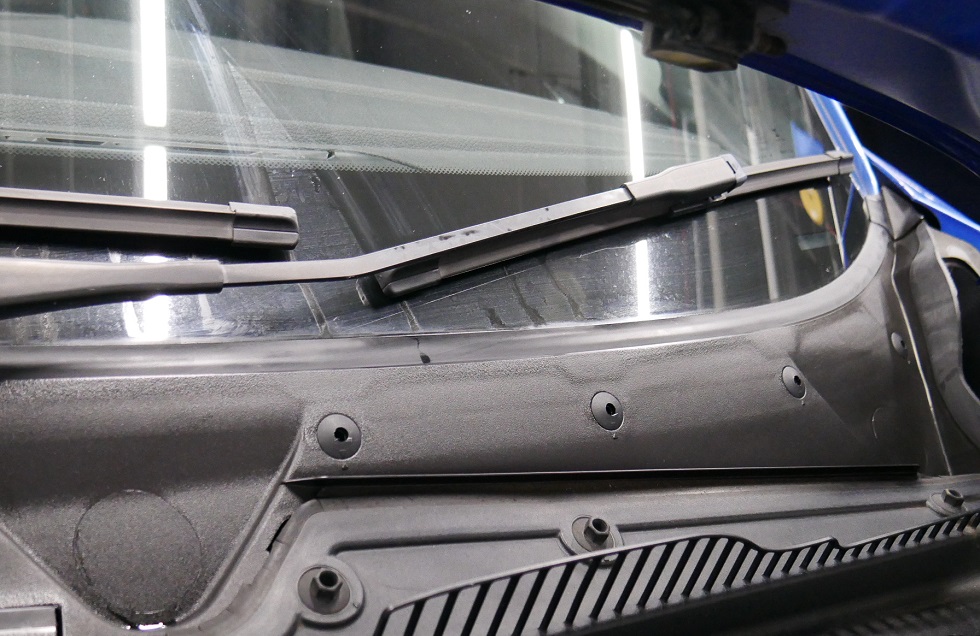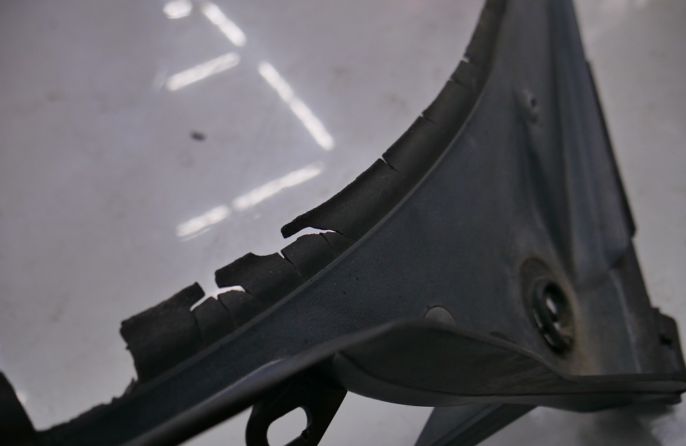 劣化してボロボロになってしまうフロントガラス下部のモールと一体化したワイパー機構部をカバーしている部品です。