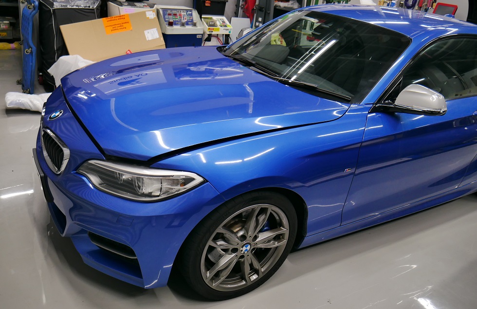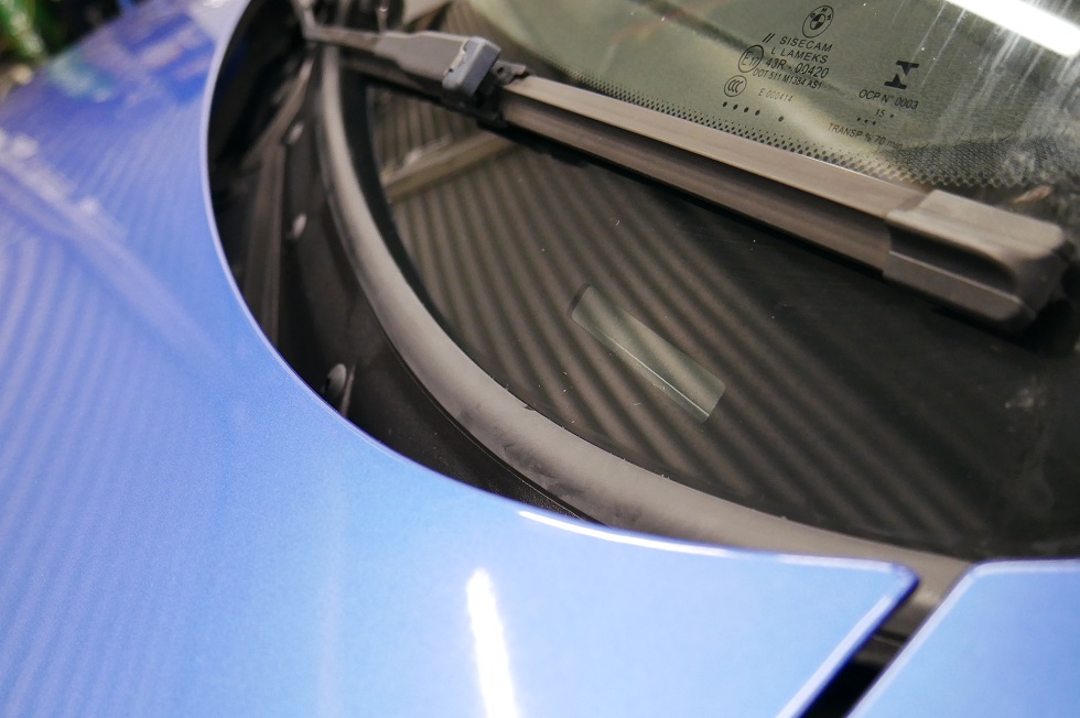 BMWでよくある経年劣化によりぼろぼろになってしまったフロントガス下部のモール(純正部品名→カウルカバー)ですが、今日はF22/2シリーズで交換修理をさせていただきました。