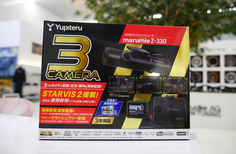 ドライブレーコーダーは、3カメラで全方向を記録、また、駐車監視機能を標準装備のスタディでも売れ筋の機種となっている ユピテル ドライブレーコーダー Z330。