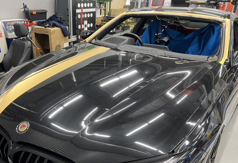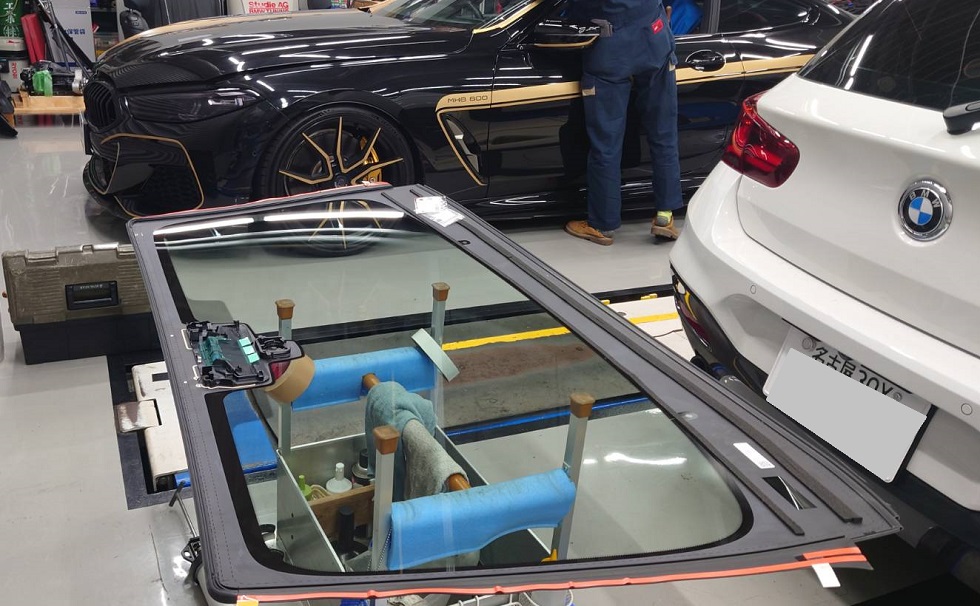 こちらは、走行中の飛び石きっかけでフロントガラスがひび割れてしまい、フロントガラス交換ご依頼でご入庫いただいていますお客様のBMW 8シリーズです。