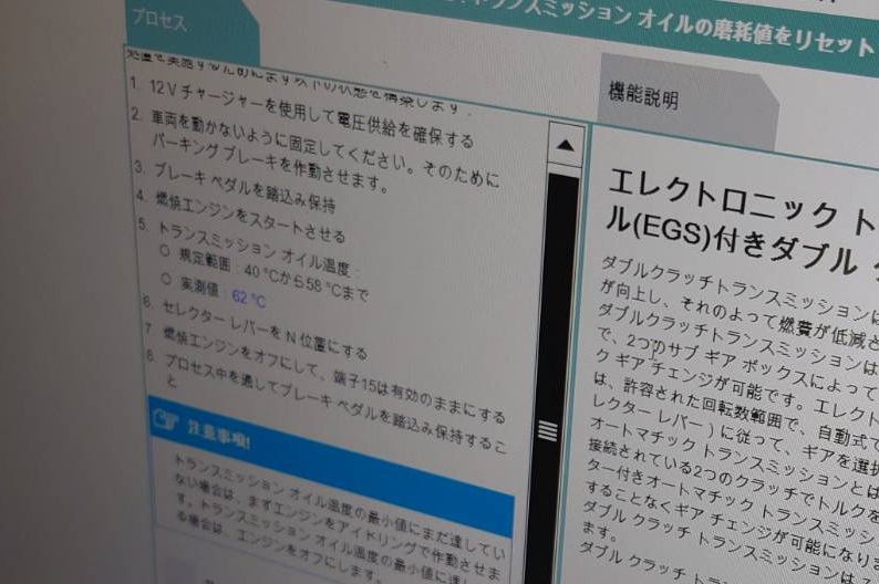 (ミッションオイル交換時期ではなく、車両に不具合が生じている場合もありますので、警告が出た場合は早めに車両故障診断を行ってください。)