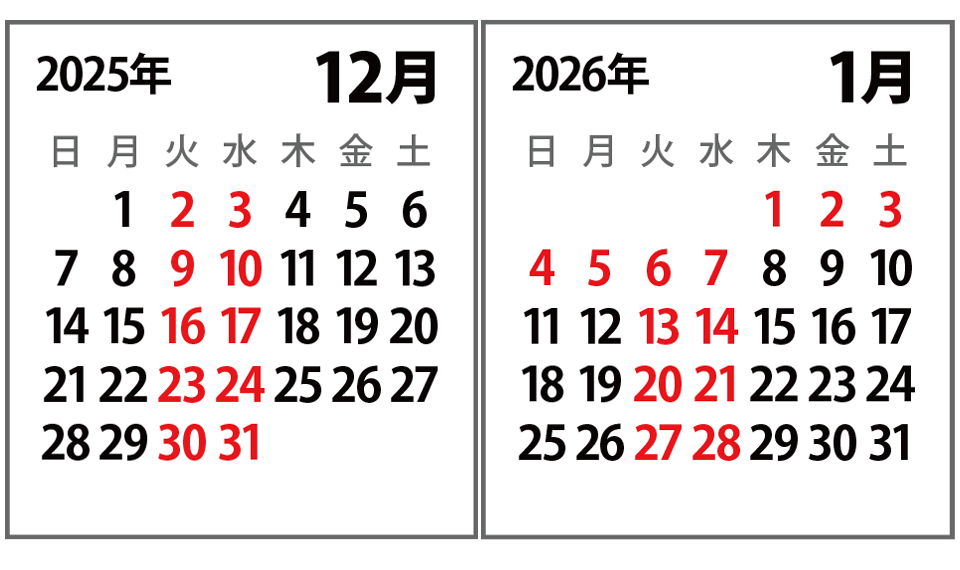 冬季休業:2025年12月30日〜2026年1月7日
