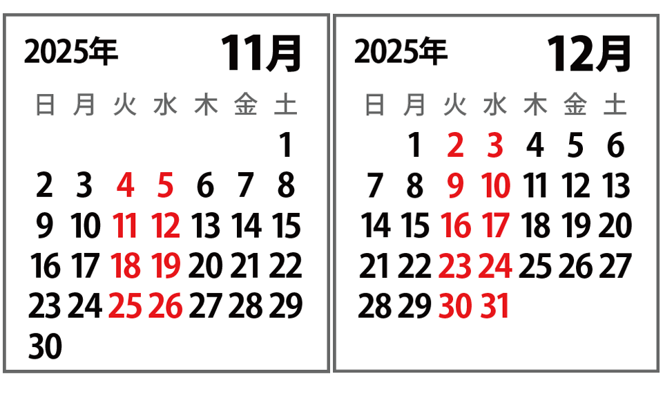 定休日:火曜・水曜 <夏季休業・冬季休業・GW休業>