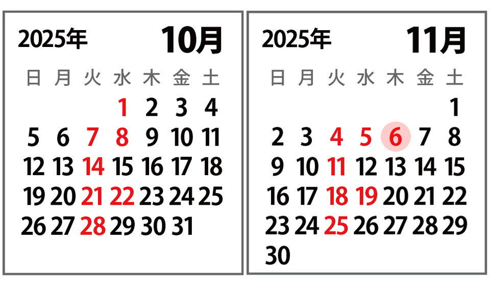 ※ 10月1日(水)は創立記念日のため休業となります。