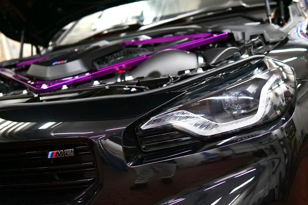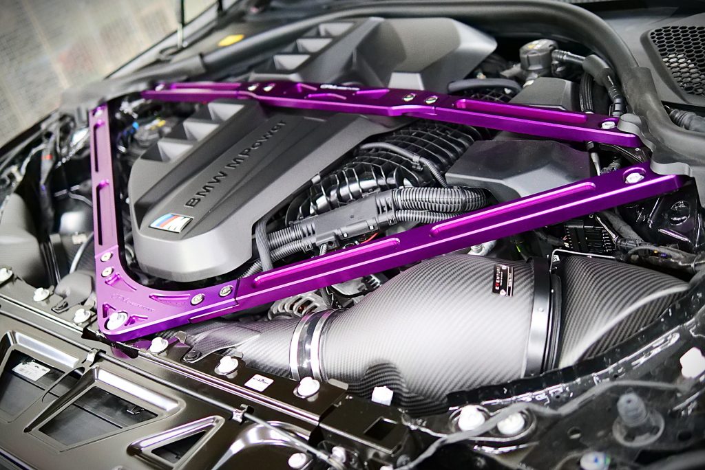 ブラック&パープルがポイントのエンジンルームが完成~見た目の華やかさだけでなくパフォーマンスもしっかり上がっておりドライブしても楽しいG87M2となりました~「M様」本日は遅くまでありがとうございました!